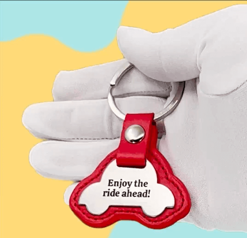 Gepersonaliseerde Gegraveerde Autosleutelhanger met Leer